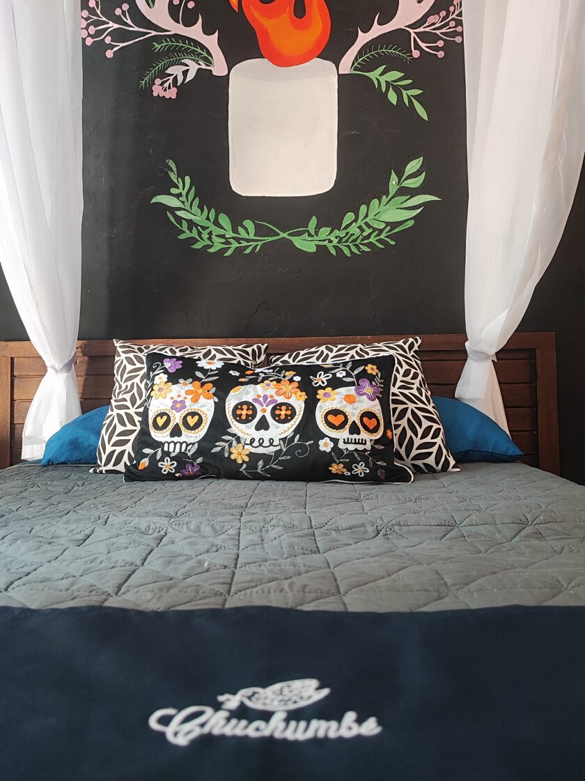 Negritos: Habitación familiar para 4 personas con dos espacios comunicados, en uno de ellos contamos con una cama matrimonial y en el otro con dos camas individuales. A.C. Ventilador, WIFI, agua caliente y decoración inspirada en la influencia africana en el son y la escencia jarocha.